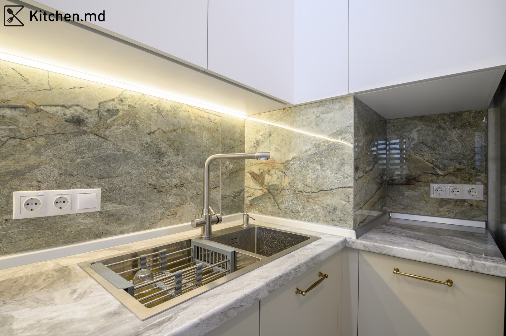 Bucătărie MODERNĂ, de colț, în nuanță - albă